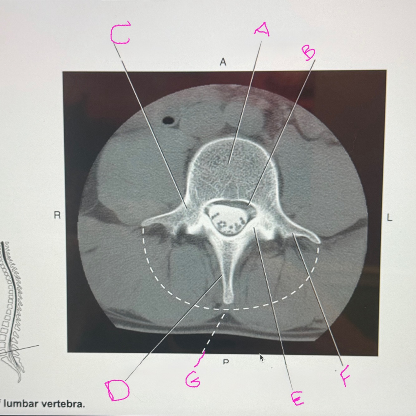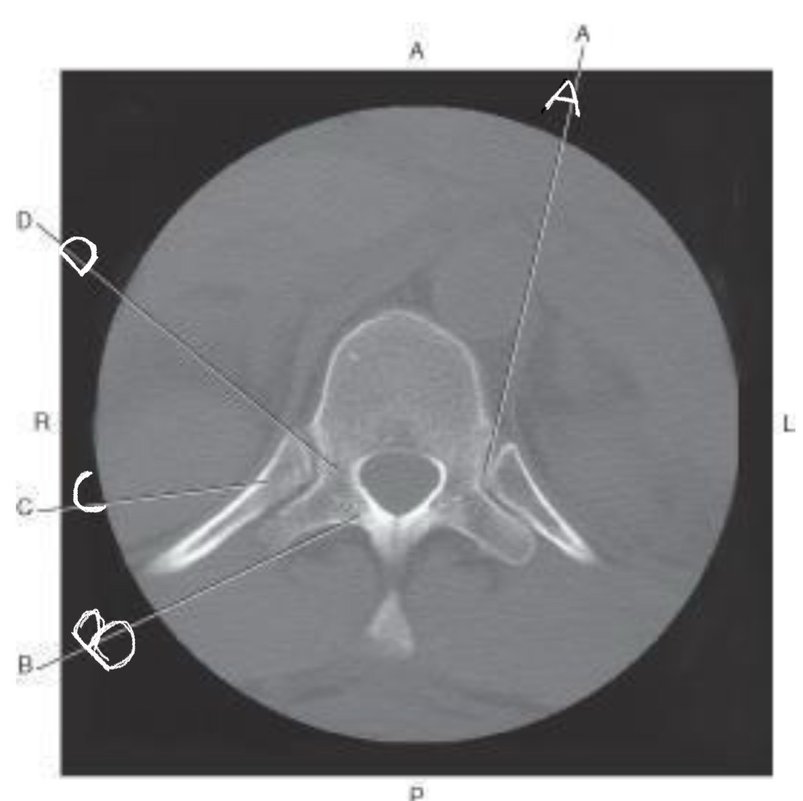 Which points to the vertebral arch ?