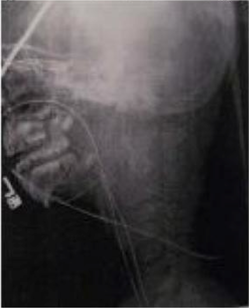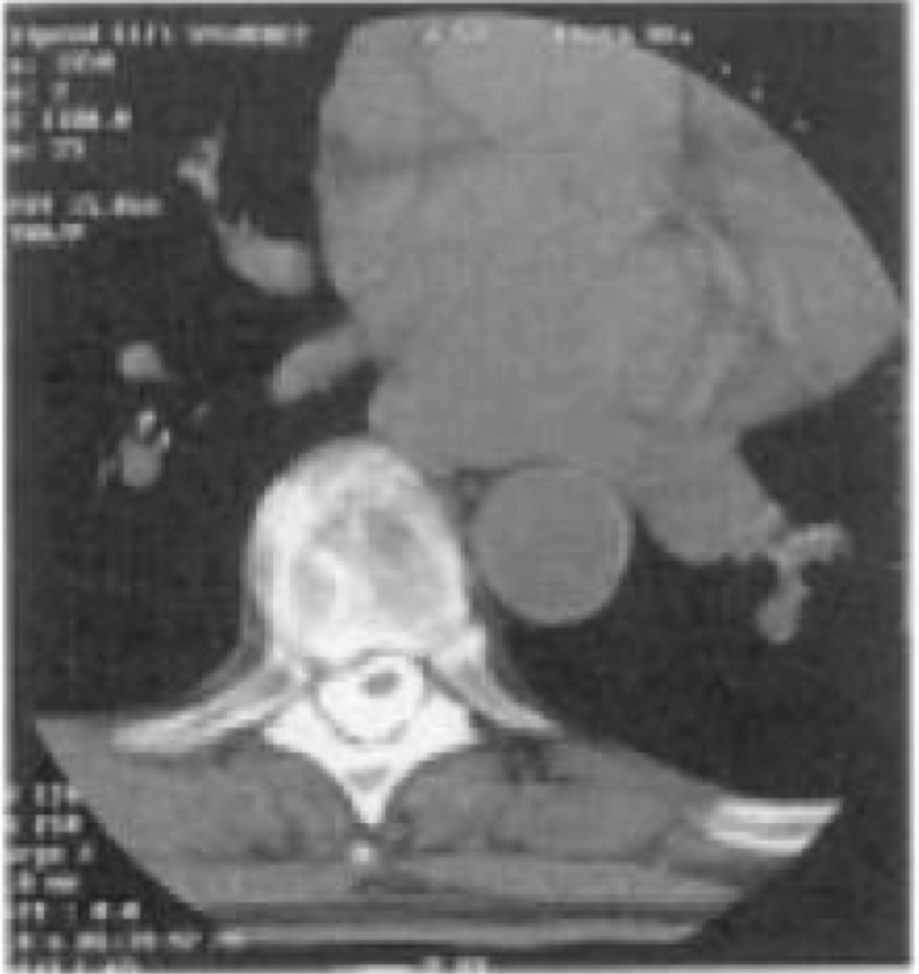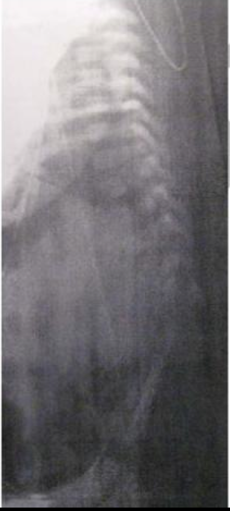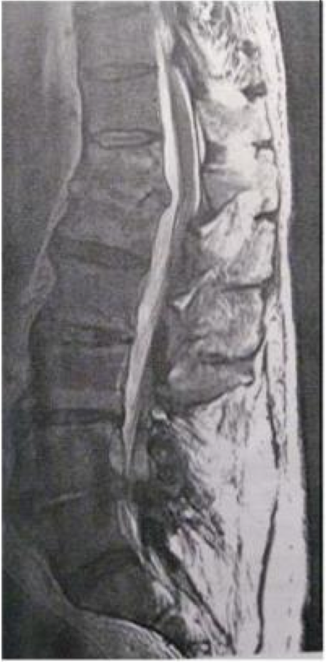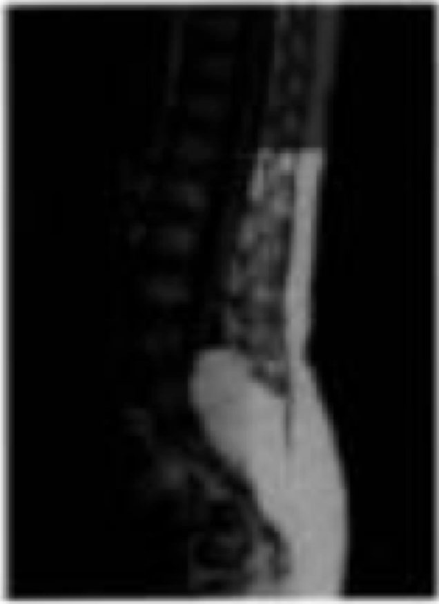 di antara ciri di bawah ini. manakah yang tidak berasosiasi dengan gangguan yang ditunjukkan pada CT Mielogram di bawah ini?