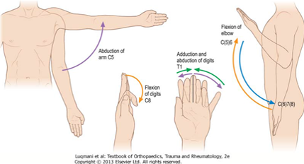 Muscles controlled by the motor element of the nerve root from a specific level