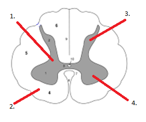 What are the parts of the spinal cord labelled 1-4?