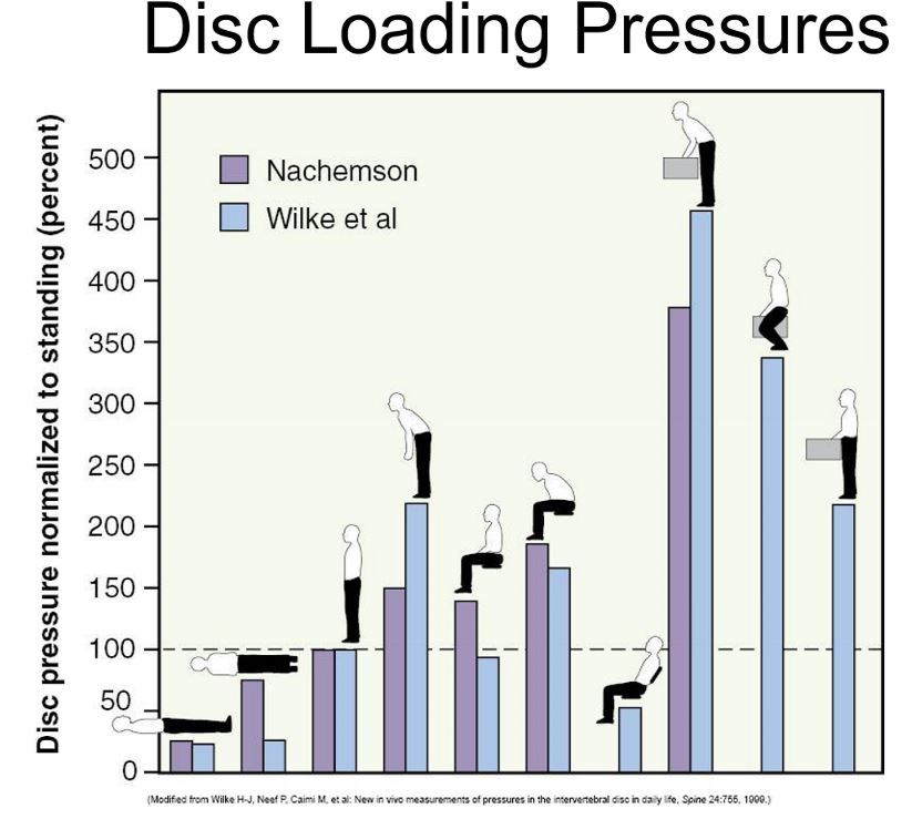 when in disc loading pressure the greatest? (3 from most to least pressure)