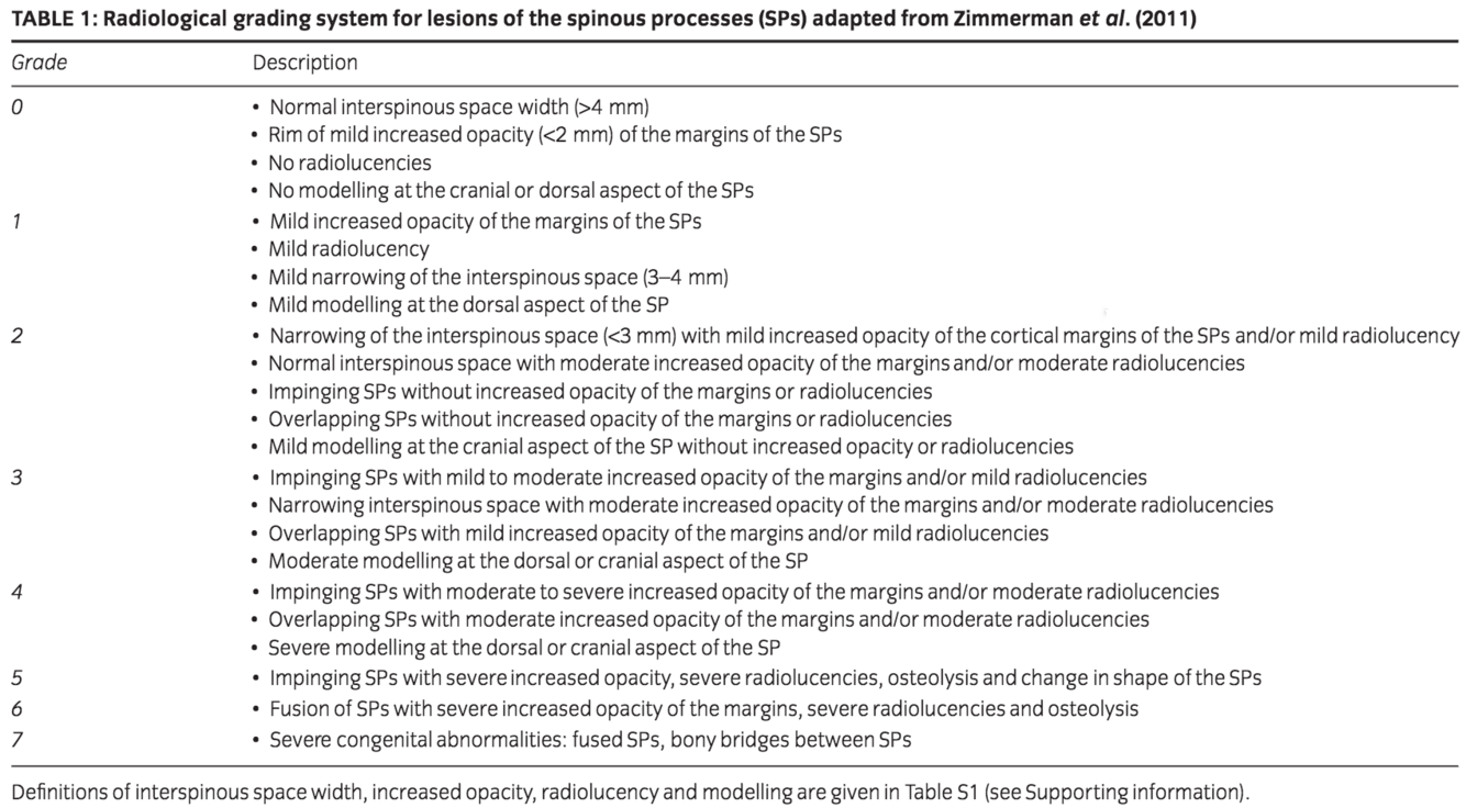 Radiographic grading of OR-DSPs (Zimmerman 2011)