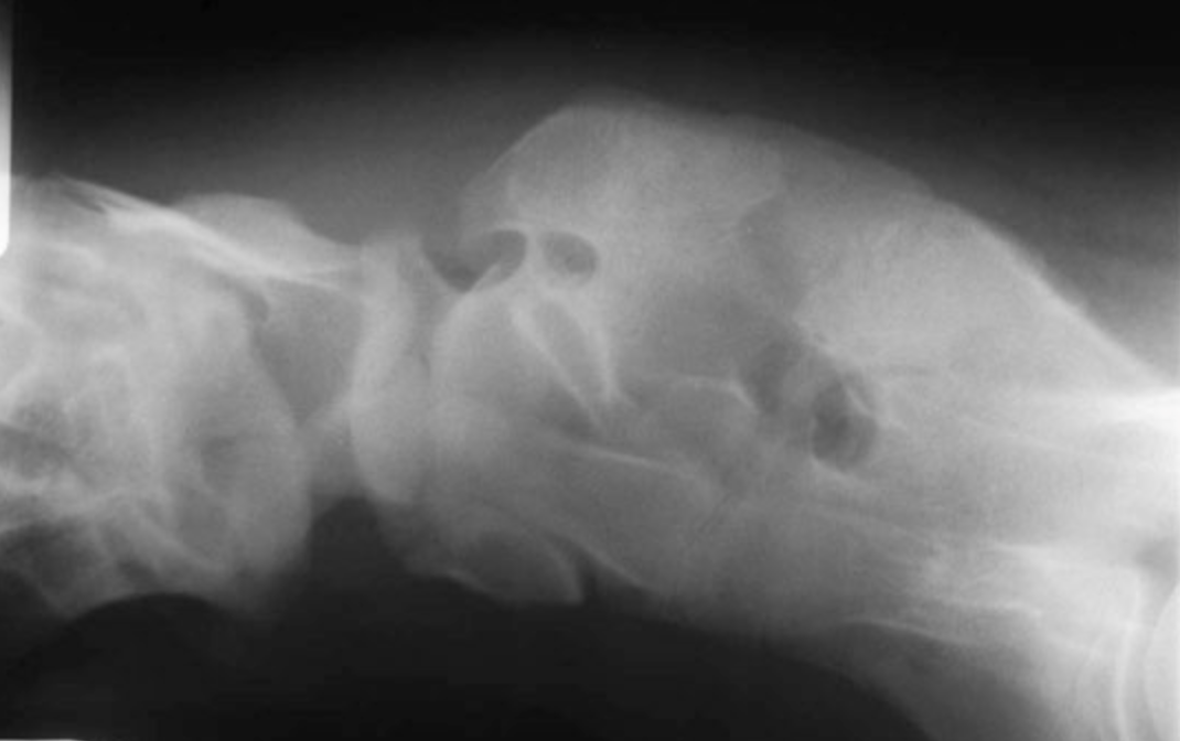 On lateral-lateral rads: periosteal reactions, increased opacity of subcortical bone, osteolytic cyst-like lesions, malformation of SPs and formation of pseudoarticulations or fusion between SPs