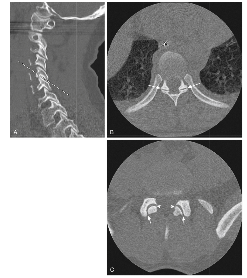 Uncovertebral joints in cervical spine C2-C3 through C6-C7