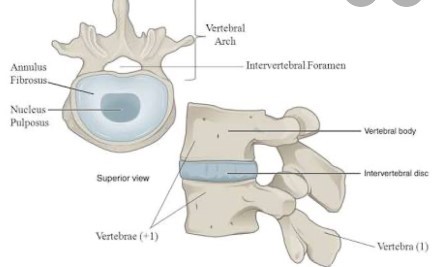 A disc is a jelly like disc between each vertebra to help with shock absorption and movement. It is made from the Annulus Fibrosis (outer ring) and the Nucleus Pulposus (inner jelly).
