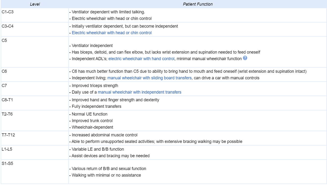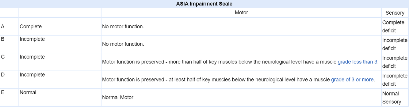 What is the ASIA spinal cord injury scale?