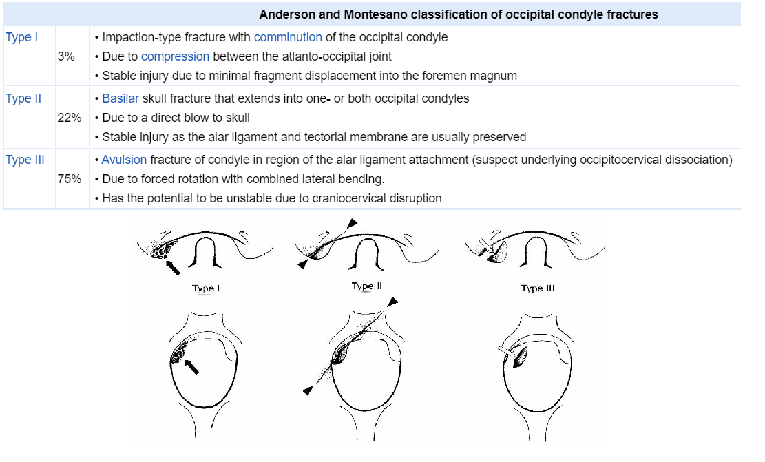 What is the classification of occipital condyle fractures?