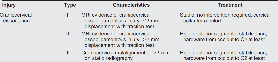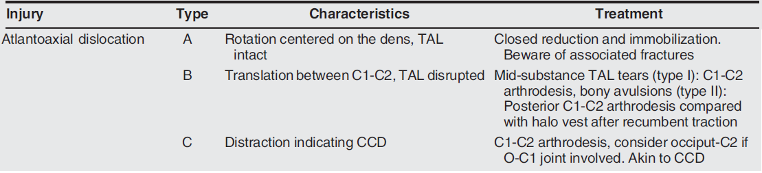 What is the classification and treatment of atlantoaxial instability?