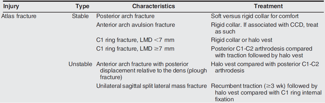 What is the treatment of atlas (C1) fractures?