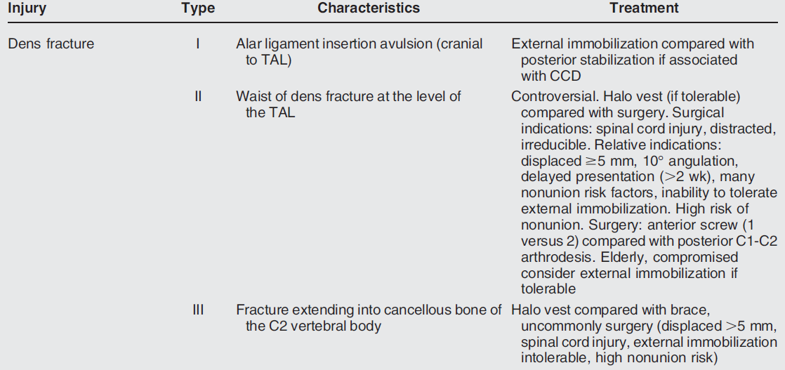 What is the treatment based on odontoid fracture type?