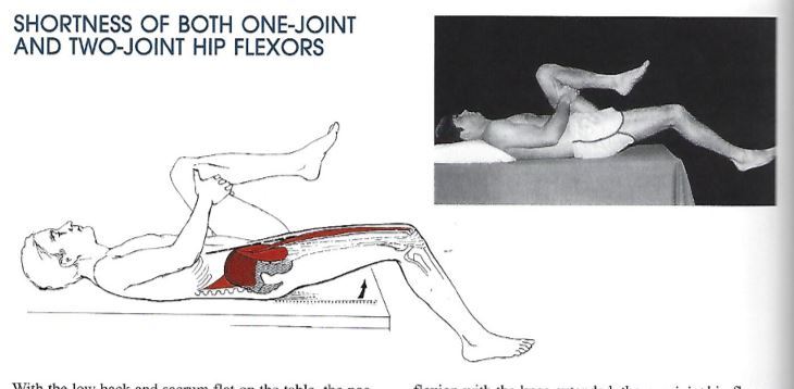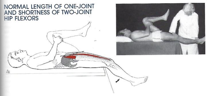 In Thomas testing, describe shortness of 1 joint and 2 joint hip flexors