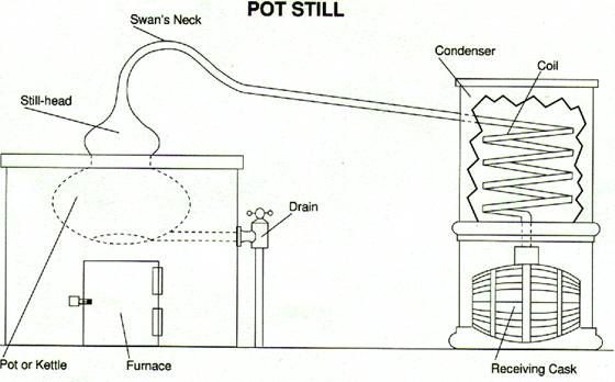 How is the product of a continuous still different from a pot still?