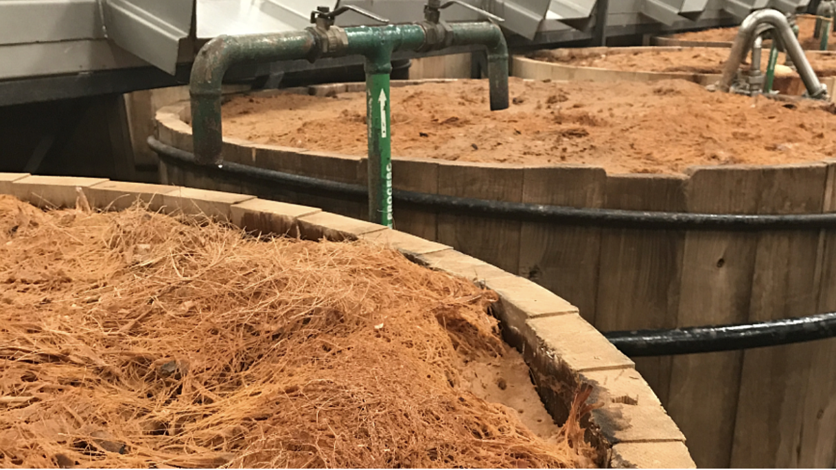 Tahona-milled agave is (most often) fermented with the bagazo - forms a cap on top of fermentation, creating an anaerobic environment/less evaporation.