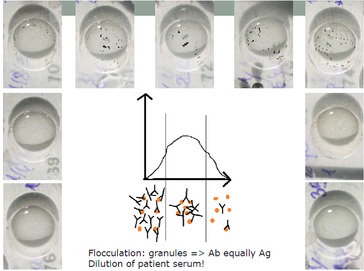 Wasserman reaction, complement fixation test: Patient serum dilutions mixed with cardiolipin, then mixed with complement, then mixed with sheep RBCs, then mixed with antibodies against sheep RBCs. If there are antibodies against cardiolipin in patients sera the complement will be sequestered and won’t lyse the sheep RBCs.