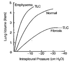 In fibrosis, you need a larger change in pressure to generate change in volume