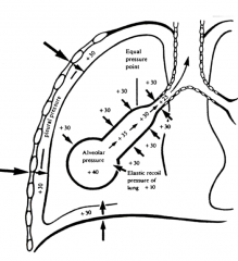 as we get closer to bronchus, pressure decreases and is more likely to collapse