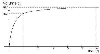 Just showing us that the peak is air you are expiring. You reach a peak after 1 sec and slowly decreases after that. Most people reach residual volume at 6 seconds