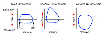 panel shows dynamic (or variable, nonfixed) extrathoracic obstruction with flow limitation and flattening of the inspiratory limb of the loop.