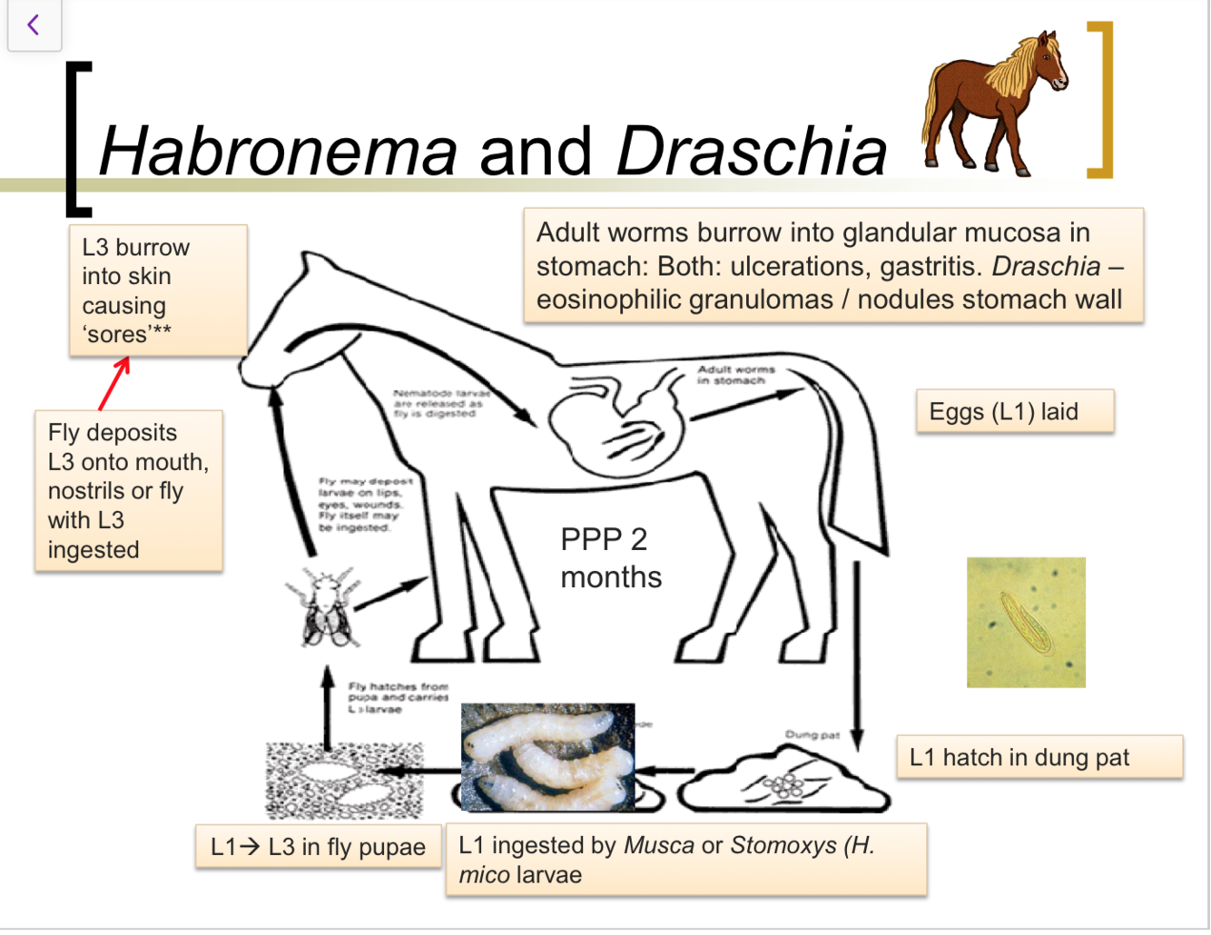 Lifecycle of Habronema and Draschia?