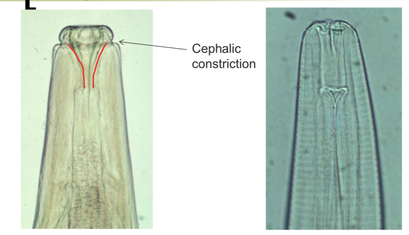 2 lateral lips, muscular oesohpagus with posterior glandular section, indirect LC, eggs with L1 or L1 viviparous