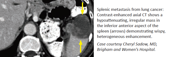 Contrast to splenic hamartoma or metastatic dz