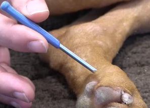 follow tibia until it bends caudally just below medial tibial condyle