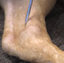 medial pelvic limb 3 cun distal to SP 9 on caudal border of tibia just below the insertion of the semitendonosus muscle