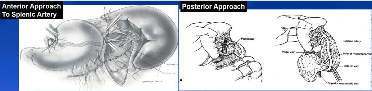 Posterior approach: you can visualize the pancreatic tail better