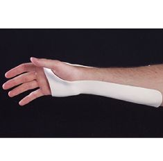 Can be long or short/palmar based. Used for “Skier’s thumb” & Arthritis of CMC joint. The purpose of the long one is to immobilize the thumb and provide support. There are several uses: De Quervain’s being the first thing that comes to mind, but also various over use injuries/tendonitis, fractures, dislocations, sprains/ligament injuries.