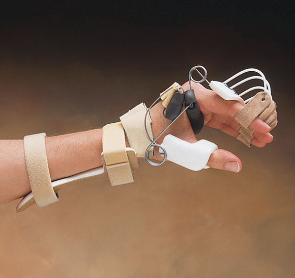 is used for flexor tendon injury repair to keep the hand and wrist flexed because if the client extends it, it could tear the repair by over stretching it. Some are straight, but mostly bend in flexion to keep hand and wrist flexed