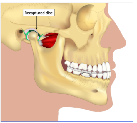 The disk will eventually recapture to the condyle so the splint can be removed so it no longer displaced and there isn’t a click