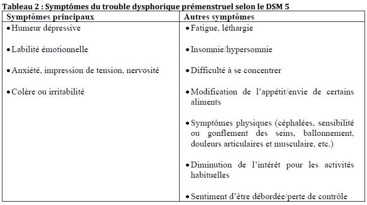 Qu’elles sont les criteres du DSM 5 pour la dysphorie menstruelle ?