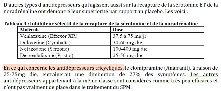 On peut ajouter de l’alprazolam 0,25 mg une ou deux fois par jour durant tout le cycle menstruel.