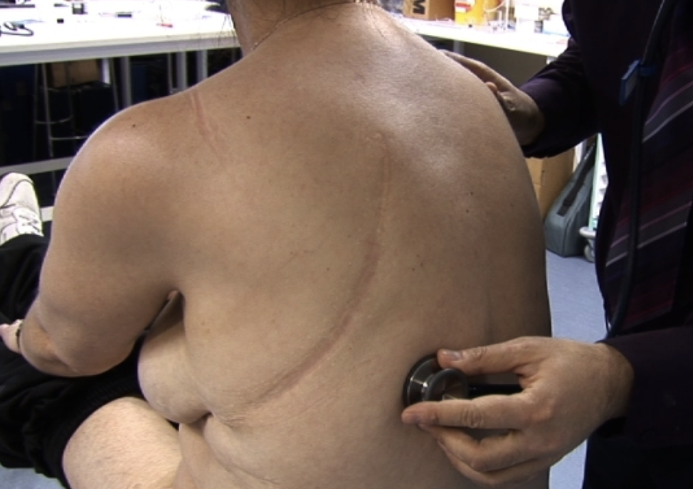 - normally be three scars, the largest of which is in the lateral chest wall, a further two scars and together these scars will triangulate.