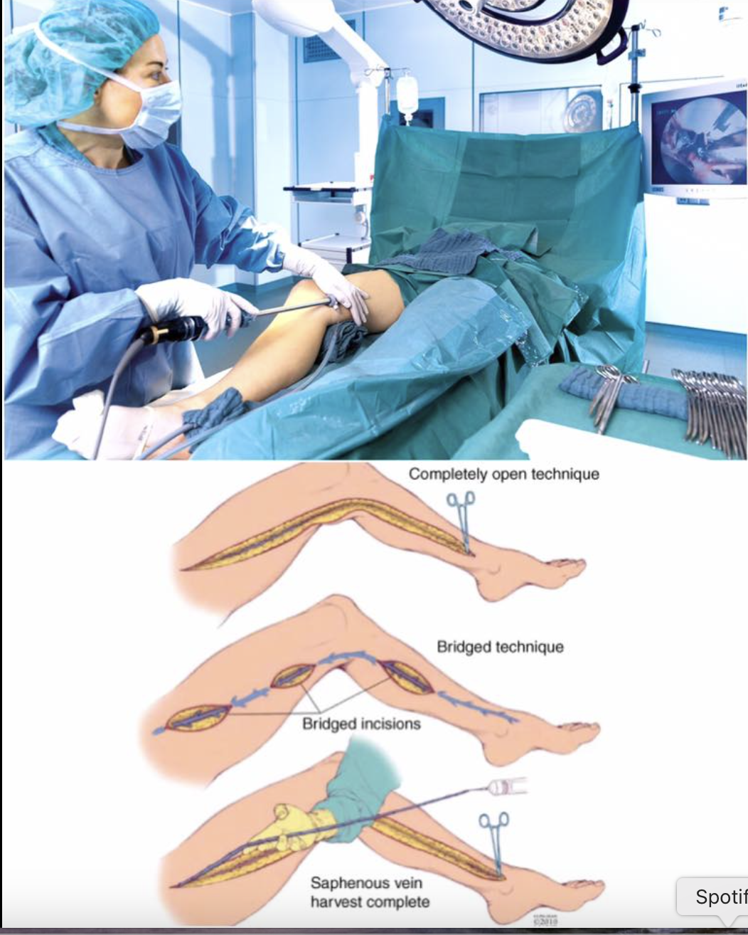 GSV grafts are commonly used for coronary artery bypass grafting and peripheral artery bypass procedures. Therefore, examine such patients for scars of cardiac surgery (e.g. median sternotomy) or any peripheral vascular procedural scars.
