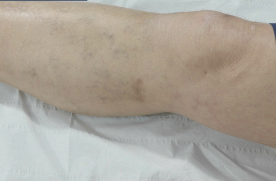 Scar from harvesting of right great saphenous vein (GSV)