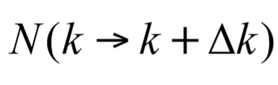 How is the number of states between k and k+Δk related to the number of states between E and E+ΔE?