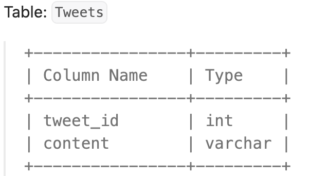 Write a solution to find the IDs of the invalid tweets. The tweet is invalid if the number of characters used in the content of the tweet is strictly greater than 15.