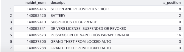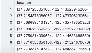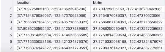 SELECT location, TRIM(both ‘()’ FROM location) FROM tutorial.sf_crime_incidents_2014_01