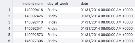 SELECT incidnt_num, date, LEFT(date, 10) AS cleaned_date, RIGHT(date, 17) AS cleaned_time FROM tutorial.sf_crime_incidents_2014_01