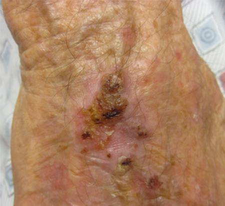. May begin in solar keratoses or be found on the lips of smokers or in long-standing ulcers (=Marjolin’s ulcer)
