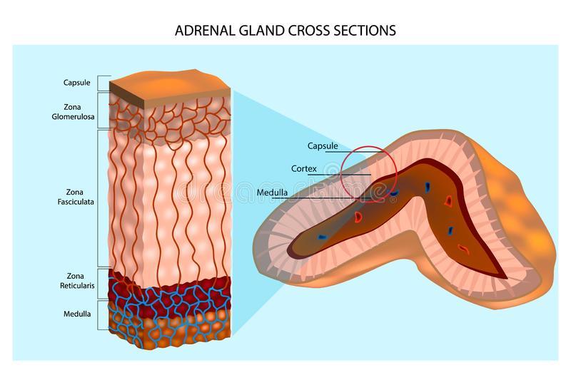 Capas de la adrenal y sus hormonas secretadas