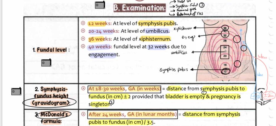 Internal ballottement at 16 weeks & external ballottement at 20 weeks.