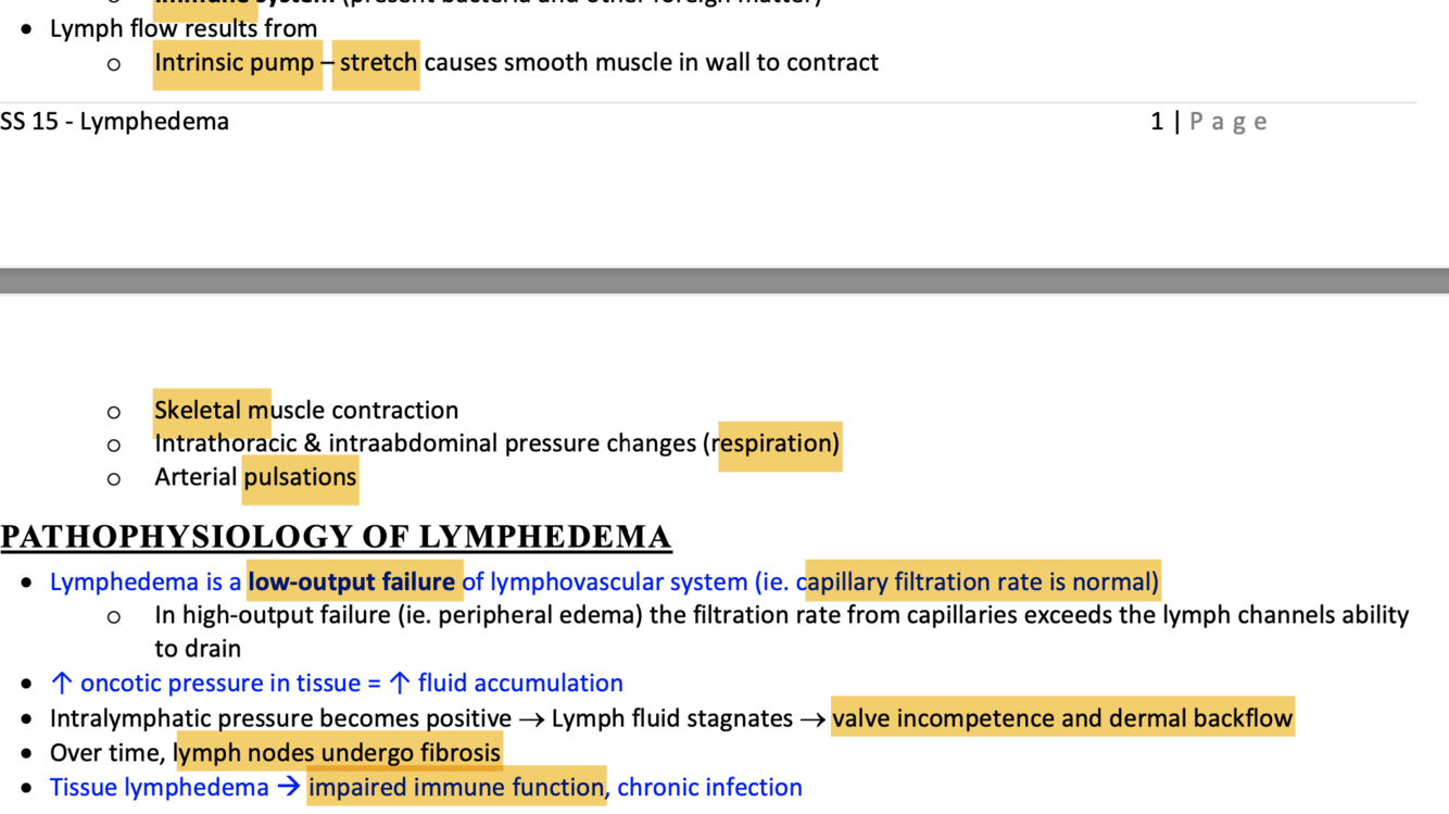 In terms of the lymphatic syetem, what is low-output vs high-output failure? What type is lymphedema?