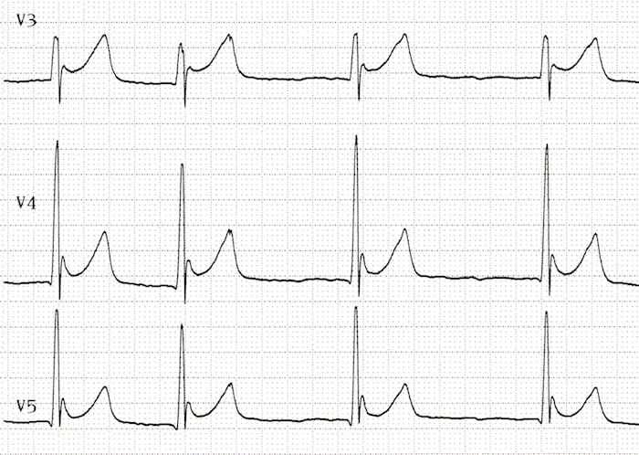 Upsloping ST-D with peaked T-waves in ___ is concerning for proximal LAD occlusion