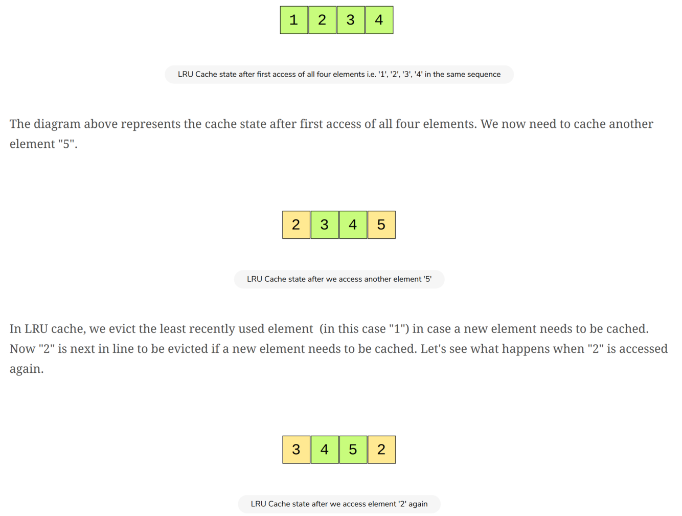 Let’s take an example of a cache that has a capacity of 4 elements. We cache elements 1, 2, 3 and 4.