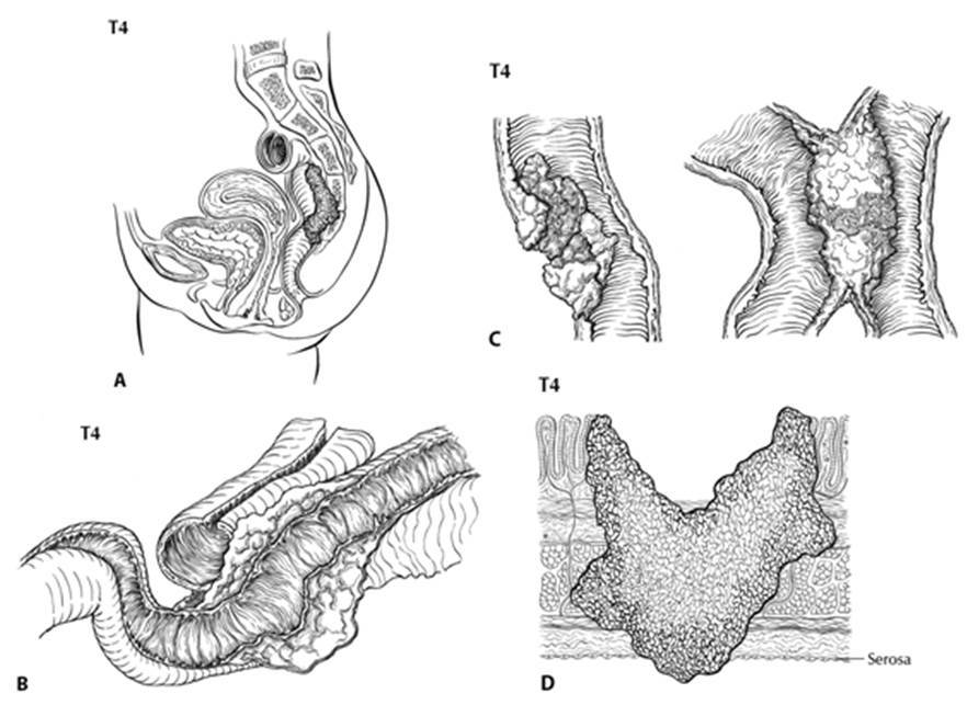 ___ pT4b: Tumor invades pelvic wall or abdominal wall