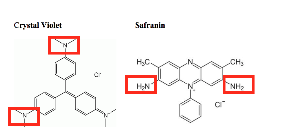 Circle the auxochrome groups in the following stains: