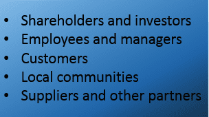 Employees, Managers, Customers, Suppliers, Investors