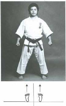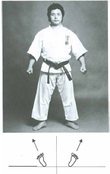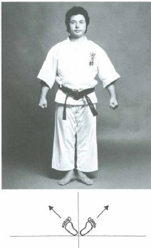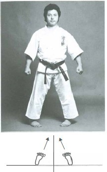 Hachiji-dachi, also known as yoi-dachi is a formal waiting posture used in some styles of Karate. Hachiji-dachi can also be used after standing bowing of while performing tsuki. ‘Yoi’ posture is not common in Okinawan Karate.
